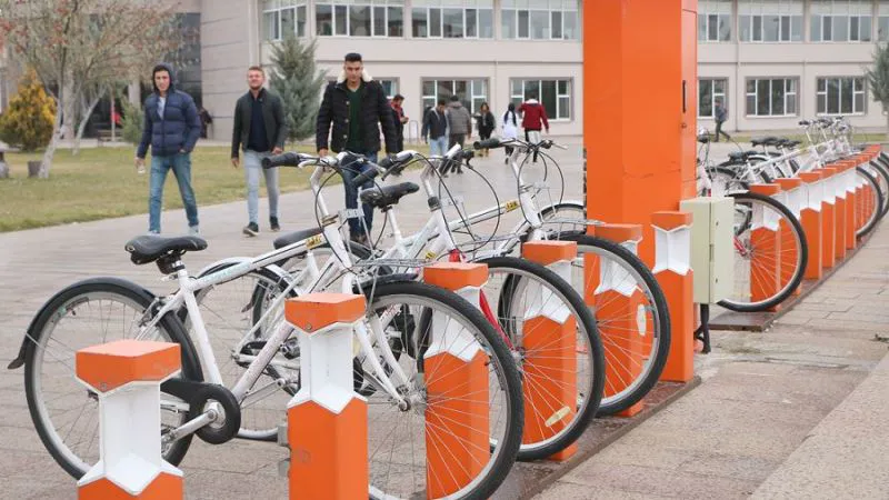 "Kampüs içerisindeki ulaşım bunlardan bir tanesi. Merkez kampüsümüzde yaklaşık 18 bin öğrencimiz var. Öğrencilerimizin yaklaşık yüzde 60'ı aktif bisiklet kullanıcısı. 2,5 yıl önce kampüs alanında bisikletli ulaşıma geçmiştik. Kampüsümüzün 8 ayrı yerinde akıllı bisiklet istasyonu var. Öğrencilerimizden 10 bini aktif bisiklet kullanımına kayıtlı. Dolayısıyla hem çevreyi kirletmemiş oluyoruz hem de gideceğimiz yere hızlıca ulaşabiliyoruz. Diğer bir parametre de sıfır atık projesi. Biz şu anda bir kamu kuruluşundan beklenen şartların tamamını yerine getirmiş durumdayız. Göreve geldikten sonra ağaçlandırma çalışmalarına büyük önem verdik. Geçtiğimiz 4 yıl içerisinde yaklaşık 357 bin metrekarelik bir alanı yeşillendirdik. Bu alana 20 bin fidan diktik."