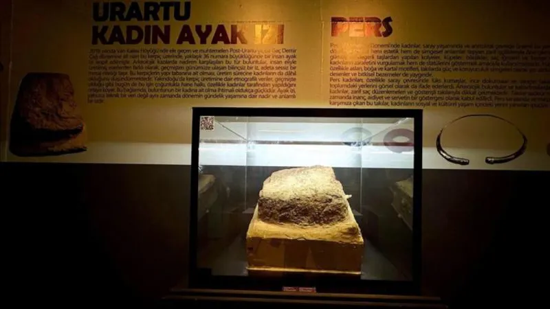 Van Kalesi’nin kuzeyinde yer alan höyükte 2018 yılında yapılan arkeolojik kazılarda gün yüzüne çıkarılan Urartu dönemine ait kadın ayak izi, dikkat çekici bir şekilde yeniden gündemde. 2.700 yıllık bu iz, Cumhuriyet’in 102. yılı anısına açılan özel sergide ziyaretçilerin beğenisine sunuldu.