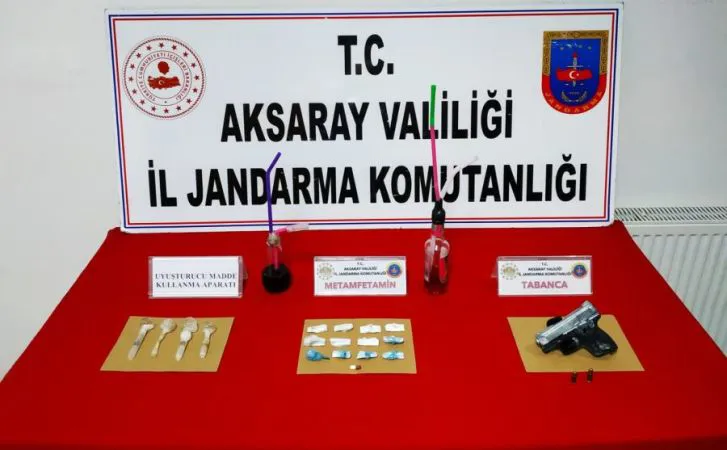 Aksaray Cumhuriyet Başsavcılığının talimatları doğrultusunda, Aksaray İl Jandarma Komutanlığına bağlı İstihbarat Şube Müdürlüğü ekiplerince yapılan istihbari çalışmalar sonucunda, Uyuşturucu veya Uyarıcı Madde İmal ve Ticareti yaptıkları tespit edilen (3) şahsın üzerinde ve evlerinde yapılan aramalarda; (30) gram metamfetamin (satışa hazır 12 adet fişek halinde), (1) adet lyrıca hap, (1) adet ruhsatsız tabanca, (2) adet tabanca fişeği ve (6) adet uyuşturucu madde kullanma aparatı ele geçirildi. Ele geçirilen malzemelere el konularak, şüpheli şahıslar hakkında gerekli adli işlemlere başlandı.
