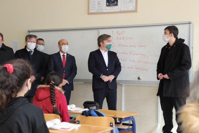 Öğrencilerden deneme sınavlarına mutlaka katılmalarını isteyen Vali Aydoğdu öğrencilere başarı dileklerini iletti. Öğrenci sıralarının ortaokul öğrencilerine göre küçük ebatlarda olduğunu bu konuda gerekli çalışmanın yapılmasını isteyen Vali Aydoğdu 7. ve 8 sınıf öğrencilerinin sıralarının yenilenmesi talimatını verdi.