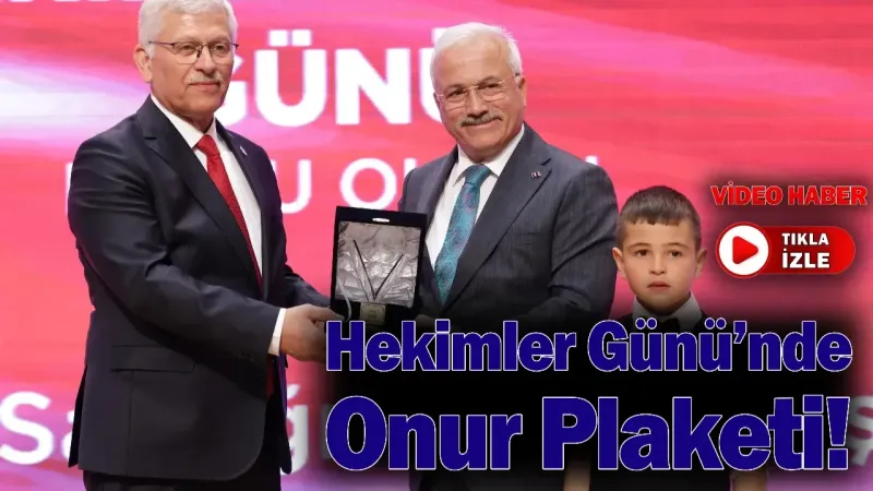 Konuşmasının ardından, Osman Emir Deveci’nin veterinerlik hayaline verdiği destek ve mesleğe duyduğu katkı dolayısıyla Vali Kumbuzoğlu’na onur plaketi takdim edildi.