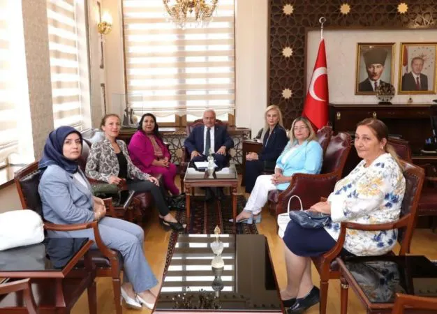 Göreve ilk başladığı günden bu yana Aksaraylı kanaat önderleri ve sivil toplum kuruluşları temsilcileri tarafından ziyaret edilen Aksaray Valisi Mehmet Ali Kumbuzoğlu, kendisine yapılan tebrik ziyaretlerini kabul etmeye devam ediyor. Tebrik ziyaretleri kapsamında Valilik makamına gelen Girişimci İş Kadınları Derneği Başkanı Hatice Şahin Eroğlu, Türk Kadınları Konseyi Dernek Başkanı Muazzez Toprak ve dernek üyeleri, Vali Kumbuzoğlu’na hayırlı olsun ziyaretinde bulundular. Vali Kumbuzoğlu ile bir araya gelen ziyaret heyeti, burada derneklerin geleceği ve Aksaray hakkında istişarede bulundular. Vali Kumbuzoğlu, nazik ziyaretlerinden ötürü Girişimci İş Kadınları Derneği Başkanı Hatice Şahin Eroğlu, Türk Kadınları Konseyi Dernek Başkanı Muazzez Toprak ve dernek üyelerine teşekkürlerini iletti.