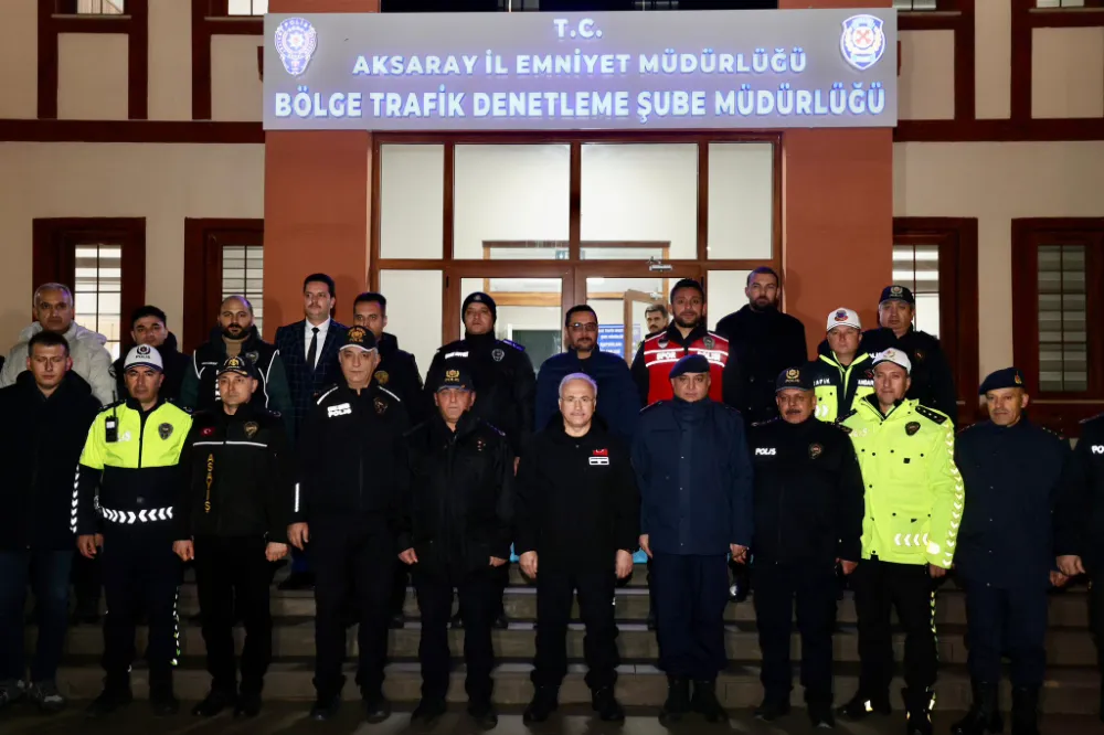 Aksaray Valisi Mehmet Ali Kumbuzoğlu, yılbaşı gecesi görevlerini sürdüren güvenlik güçlerini unutmadı. Vali Kumbuzoğlu, Bölge Trafik Denetleme Şube Müdürlüğü'nde görevli polis memurlarının yeni yılını kutlayarak, onlara moral verdi.