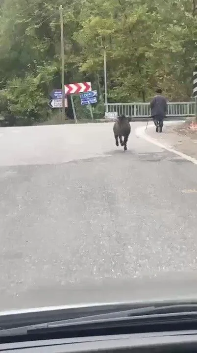 Zonguldak’ın Devrek ilçesinde bir köy yolunda yaşanan ilginç anlar amatör kameraya yansıdı. Hızla koşan bir domuz, yol kenarında yürüyen yaşlı bir adama doğru yöneldi. Adamın son anda gösterdiği refleksle çarpışma yaşanmadı, domuz yoluna devam etti.