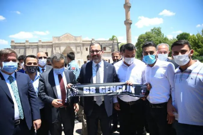 Gençlik ve Spor Bakanlığı tarafından Aksaray'a yapılması planlanan ve yapımı devam eden spor tesisleri ile gençliğe dair projelerin protokol imzaları için düzenlenen törene katılan Bakan Kasapoğlu; ”Evet bugün Aksaray'dayız. Salihler şehri, ilim şehri, üretim şehri ve gençliğin şehri Aksaray'dayız. Bugünkü çalışmamamız protokolümüz, projelerimiz bundan sonraki yapacağımız çalışmalar Aksaray için, Aksaray'ımızın çok kıymetli gençleri için, tüm halkı için hayırlı uğurlu olsun diyorum. Evet sizleri bakanlığımızda ağırlamıştık. Aksaray olsun ilçeler olsun hepsini masaya yatırmıştık. Spor geleceği ile ilgili çok bilgiler mütalaa ettik ve gidelim bunu Aksaray'da imzasını hep birlikte gerçekleştirelim diyerek sonrasındaki süreci de inşallah yine tıpkı bugün olduğu gibi haber edelim dedik. Gerek milletvekilimizle gerek valimizle, gerek belediyelerimizle, teşkilatımızla, gençlerimizle, sporcularımızla gerçekleştirelim dedik. Bugün atacağımız imzalarla Aksaray'ımızın çevresi Gülağaç'ı, Eskili, Güzelyurt'u Ortaköy'ü, Sarıyahşi’yi, Sultanhanı ve tüm Aksaray geneline yapılacak projeleri imzalayacağız. Hep birlikte yine inşa edeceğiz. Tabi Türkiye çok önemli bir süreci yaşıyor. Cumhuriyet tarihinin rekorlarını kıran hizmet seferberliği var. Ekonomide var, sanayide var, eğitimde var, sağlıkta var, gençlik ve sporda var. Şükürler olsun çıtamızı sayın Cumhurbaşkanımızın güçlü liderliği, engin vizyonuyla her daim yukarılara taşıyacağız”