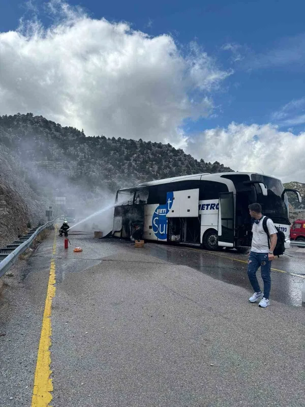 Olay, öğle saatlerinde Seydişehir Antalya kara yolunda ilçe merkezine 7. kilometre kala kaçış rampası mevkiinde meydana geldi. Edinilen bilgiye göre, Antalya'nın Alanya ilçesinden Seydişehir ilçesi istikametine seyir halinde olan plakası ve sürücüsünün ismi öğrenilemeyen Metro Turizm otobüsünün motor kısmında yangın çıktı.